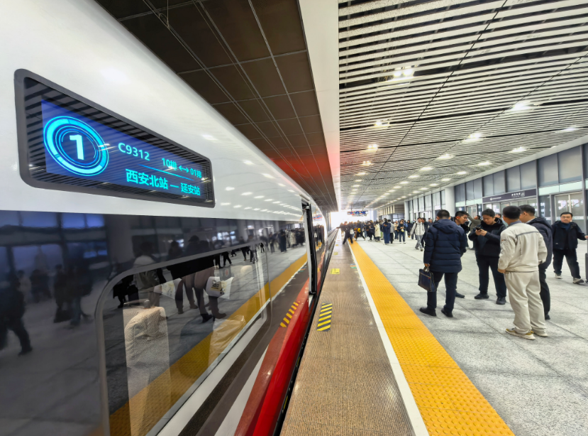 三秦都市報(bào)-三秦網(wǎng)訊(記者 趙麗莉)12月26日10時(shí),C9309智能動(dòng)車(chē)組列車(chē)駛出延安站,中國(guó)革命的圣地延安進(jìn)入“高鐵時(shí)代”。西安至延安的鐵路最快運(yùn)行時(shí)間,從以前的2.5小時(shí)左右縮短至1小時(shí)左右。