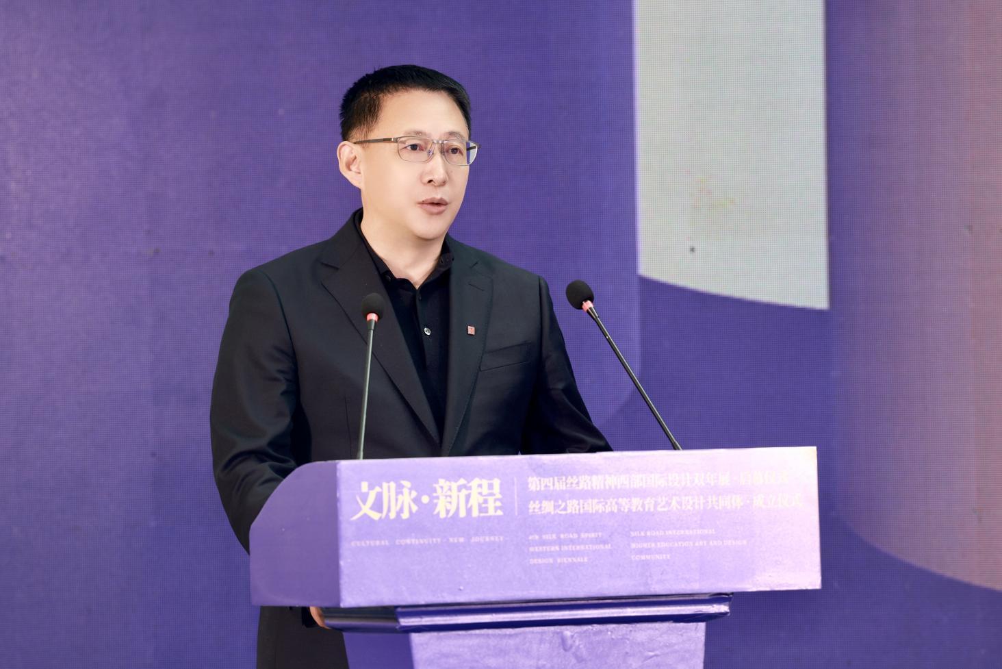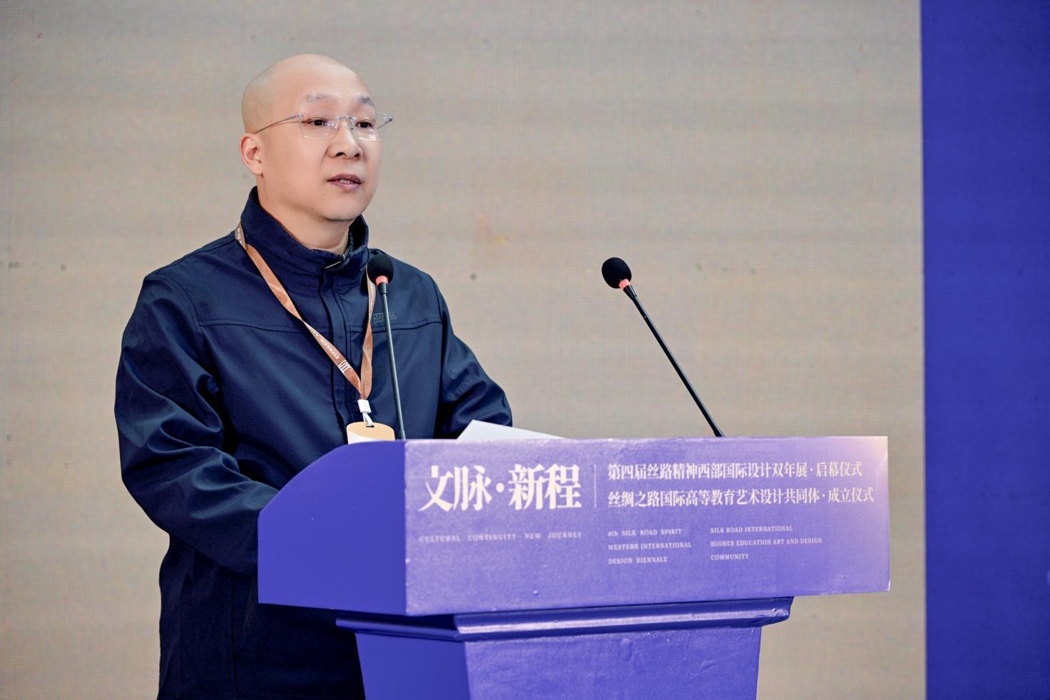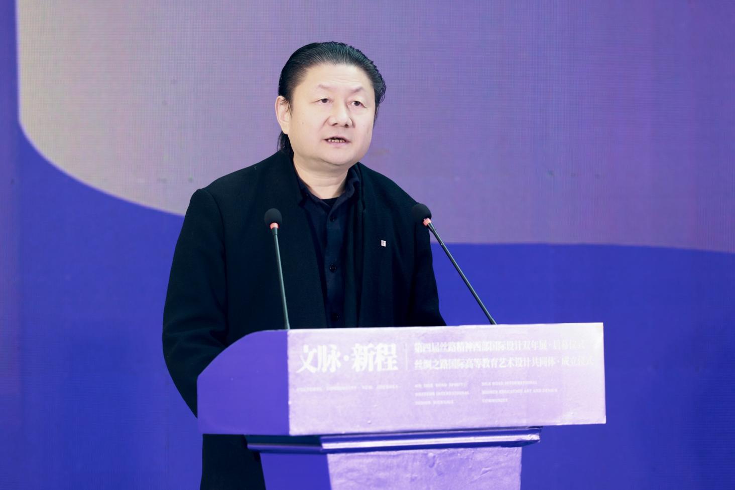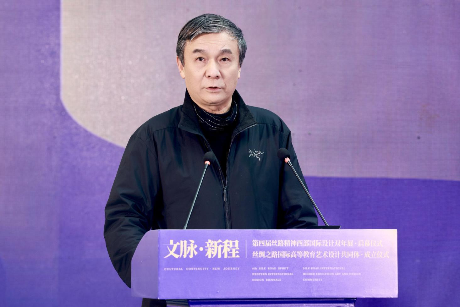 朱盡暉院長(zhǎng)在開幕致辭中首先歡迎各位新老朋友齊聚絲路,共敘國(guó)際設(shè)計(jì)。他指出,站在絲路起點(diǎn),駝鈴悠遠(yuǎn)、文脈綿長(zhǎng),和平合作、開放包容的絲路精神始終浸潤(rùn)心間。絲路精神—西部國(guó)際設(shè)計(jì)雙年展歷經(jīng)三屆深耕積淀,已成長(zhǎng)為中外設(shè)計(jì)界交流互鑒的國(guó)際知名學(xué)術(shù)品牌,其探索成果更成功轉(zhuǎn)化應(yīng)用2023中國(guó)中亞峰會(huì)的視覺、景觀、服飾等相關(guān)設(shè)計(jì),生動(dòng)踐行了絲路精神的時(shí)代價(jià)值。多年來(lái),西安美院與吉爾吉斯斯坦、哈薩克斯坦等絲路沿線國(guó)家院校深化合作,在人才聯(lián)合培養(yǎng)、創(chuàng)作實(shí)踐創(chuàng)新、成果落地轉(zhuǎn)化等領(lǐng)域凝聚強(qiáng)大合力。開啟絲路國(guó)際高等藝術(shù)教育共同體建設(shè)新篇,成員單位將借力人工智能等新技術(shù)賦能設(shè)計(jì)創(chuàng)新,深耕中華文脈、立足人類命運(yùn)共同體理念,讓設(shè)計(jì)更好服務(wù)社會(huì)發(fā)展、惠及民生福祉。向長(zhǎng)期以來(lái)支持雙年展與藝術(shù)交流事業(yè)的各界友人致以誠(chéng)摯謝意,祝愿本次活動(dòng)圓滿啟航,攜手共譜絲路設(shè)計(jì)高質(zhì)量發(fā)展新章。