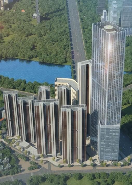 金廊22-1項目位于沈陽金廊沿線核心區,總建筑面積約61.6萬平方米,涵蓋318米甲級寫字樓、212米商品住宅樓、4棟160米住宅樓、2棟130米回遷樓及5層整體地下室,是集商務、居住、配套功能于一體的城市綜合體。其中此次幕墻落成的寫字樓以“金色長廊”為設計內核,通過玻璃與金屬線條的精準搭配,將建筑美學與區域定位深度融合。