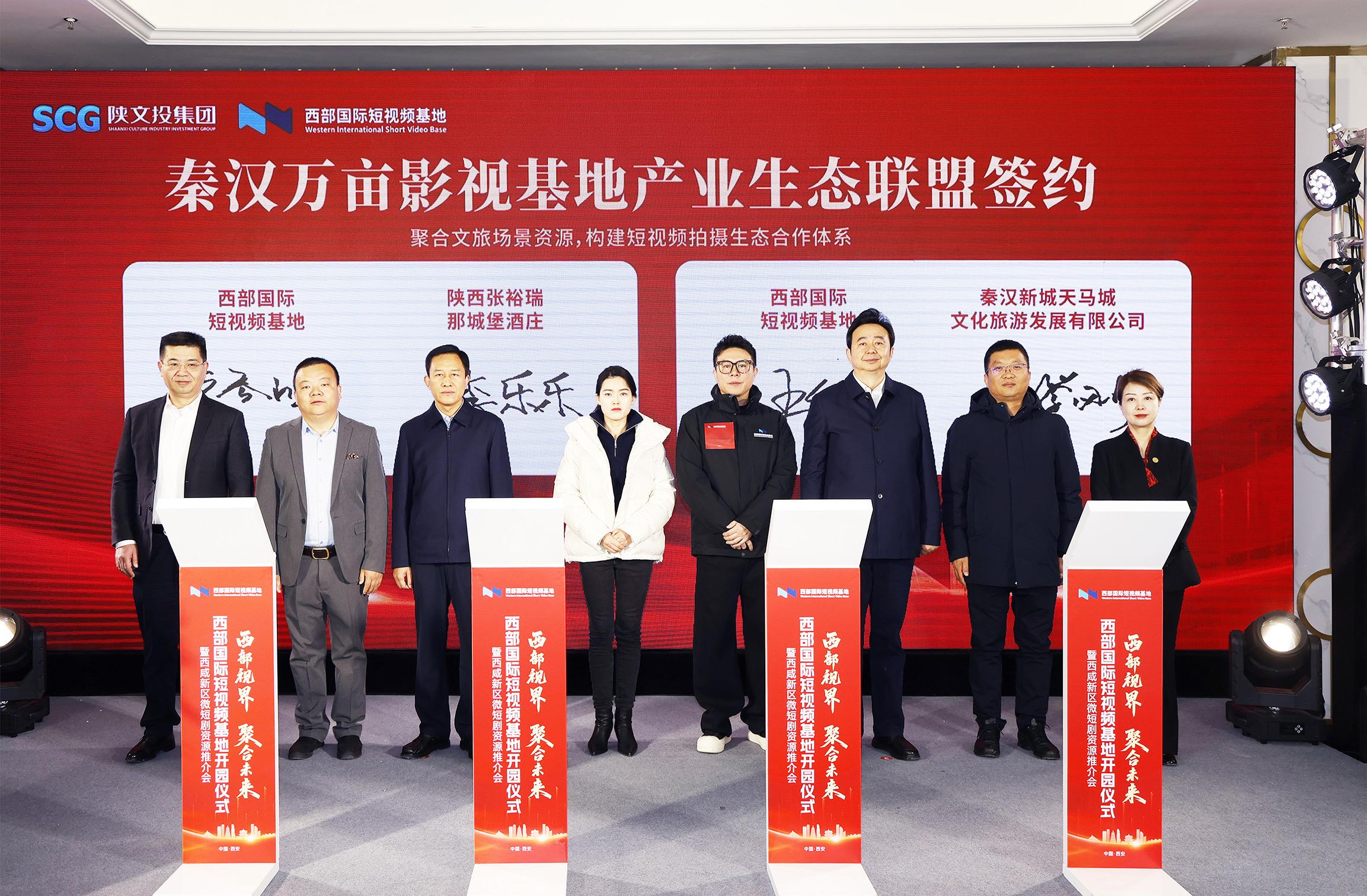 活動(dòng)現(xiàn)場,陜文投集團(tuán)相關(guān)企業(yè)與西安市多家文旅企業(yè)、園區(qū)代表共同發(fā)起成立秦漢萬畝影視基地產(chǎn)業(yè)聯(lián)盟,與短視頻上下游企業(yè)舉行“一基地四平臺(tái)”戰(zhàn)略合作、年度戰(zhàn)略客戶合作、配套服務(wù)供應(yīng)簽約。并與西北大學(xué)、陜西師范大學(xué)、西安外國語大學(xué)、西安體育學(xué)院、西安戲劇學(xué)院達(dá)成產(chǎn)教融合平臺(tái)建設(shè)合作,掛牌成立校外影視合作實(shí)踐實(shí)訓(xùn)基地,以產(chǎn)學(xué)研聯(lián)動(dòng)助力短視頻事業(yè)實(shí)現(xiàn)高質(zhì)量發(fā)展。