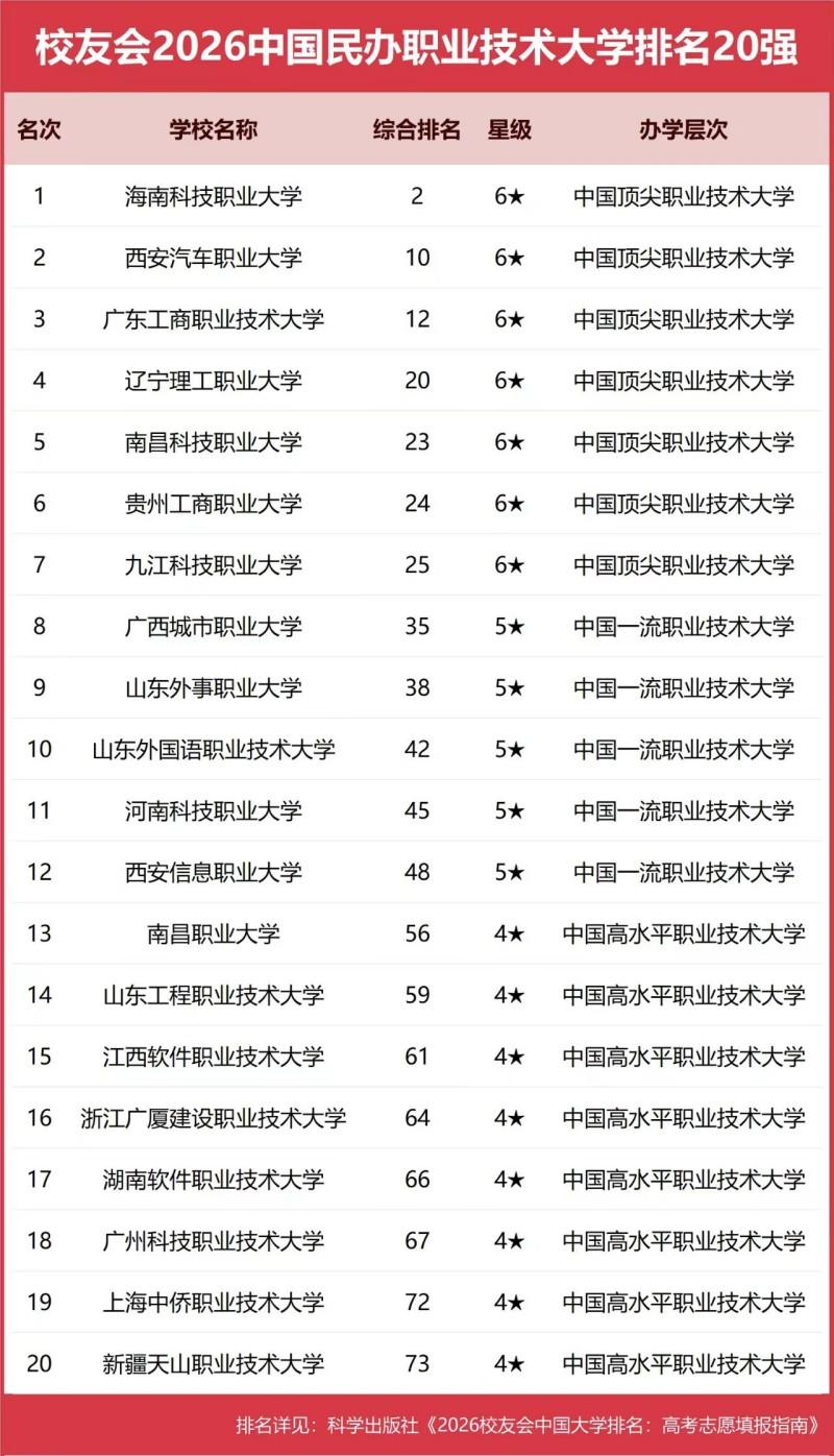 三秦都市報-秦聞訊-三秦網訊(記者 楊琪)1月12日,全國第三方大學評價研究機構艾瑞深校友會網正式發布《2026中國大學排名》研究報告。在職業技術教育領域競爭日益激烈的背景下,西安汽車職業大學憑借其顯著的辦學實力,在兩項重要排名中取得突出成績:位列校友會2026中國民辦職業技術大學排名第10位,成功躋身20強;同時入選校友會2026中國職業技術大學排名30強,并以97.37分的優異成績獲評6星級院校,充分體現了該校在全國職業技術院校中的領先地位。