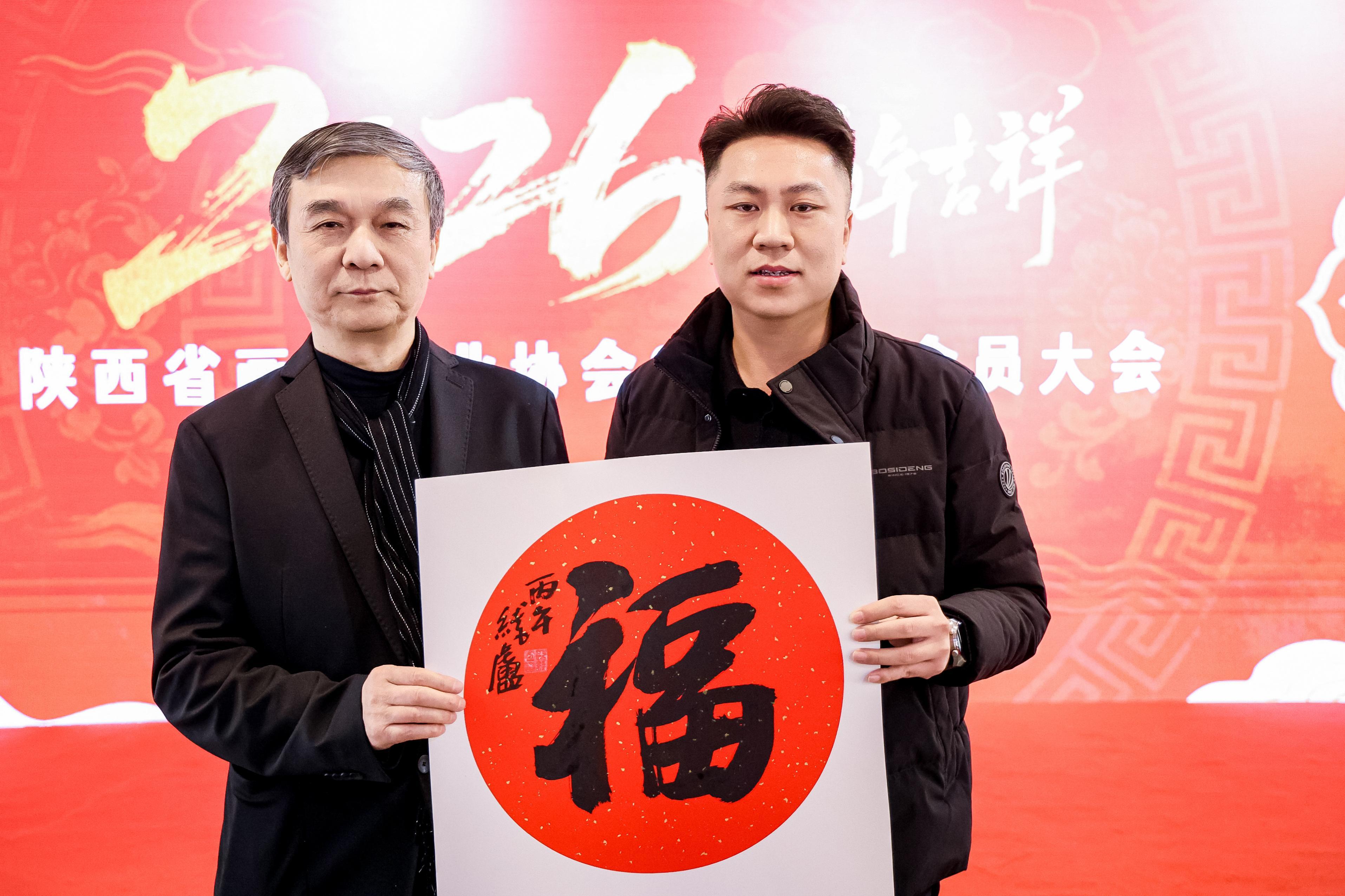 新聘任的藝術顧問王西京、郭線廬、楊曉陽、遆高亮、王保安、張紅春、朱盡輝、喬宜男義務書寫了“福”字做為年會獎品。陜西省畫廊行業協會2026年年會在熱鬧的抽獎活動和精彩的文藝演出中圓滿落幕。