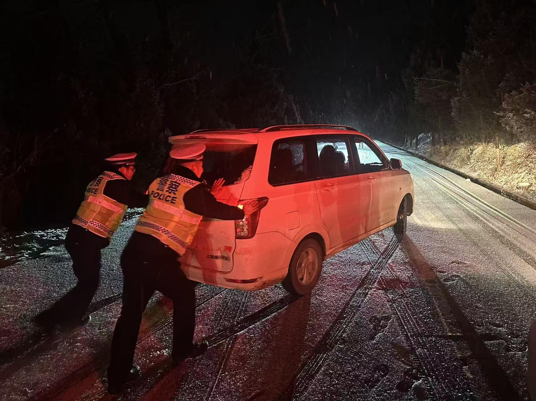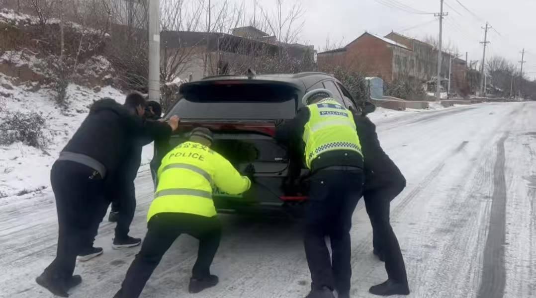 車身一點點向前挪動,終于駛離冰段。司機連聲道謝,民警擺擺手:“雪天路滑,慢行,保持車距。”