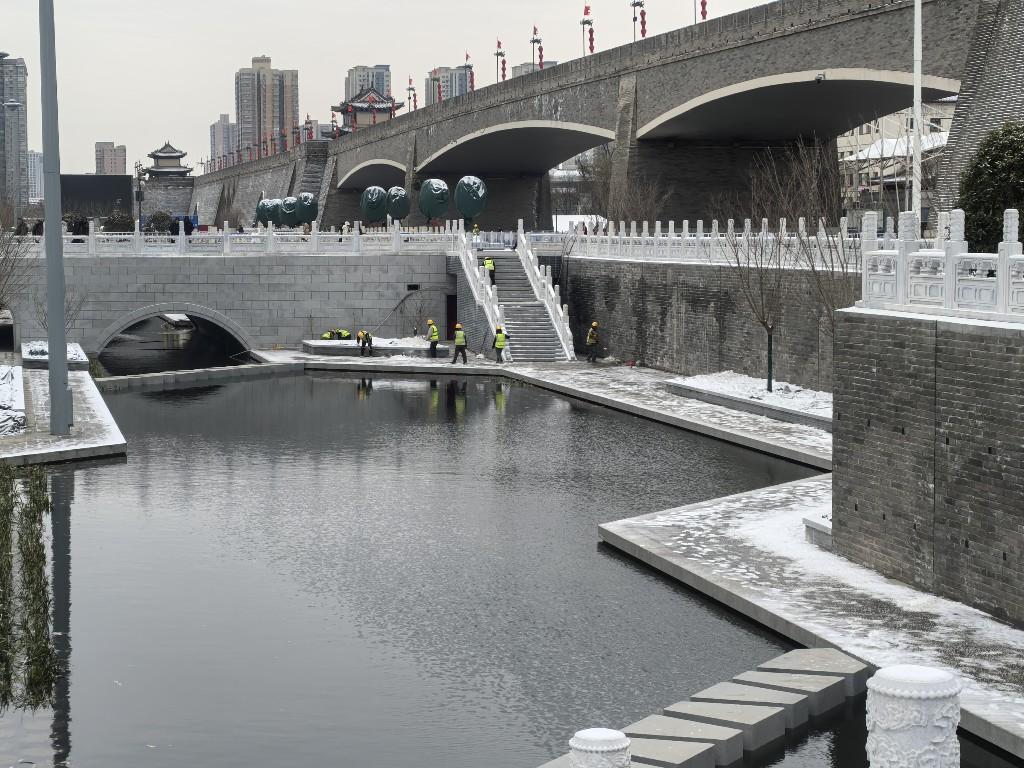 2025年1月,護城河火車站項目正式啟動建設。西安水務集團水務投資公司目標明確、迎難而上,順利完成暗涵清淤、混凝土澆筑、管道改造、7號壩改造、井室工程及河道開挖拆除等核心工程。截至目前,古法箍城、景觀河道鋪裝已完工,火車站南廣場鋪裝完成99%,衛生間改造完成70%,綠化苗木種植完成70%,預計2026年1月底項目基本完工。