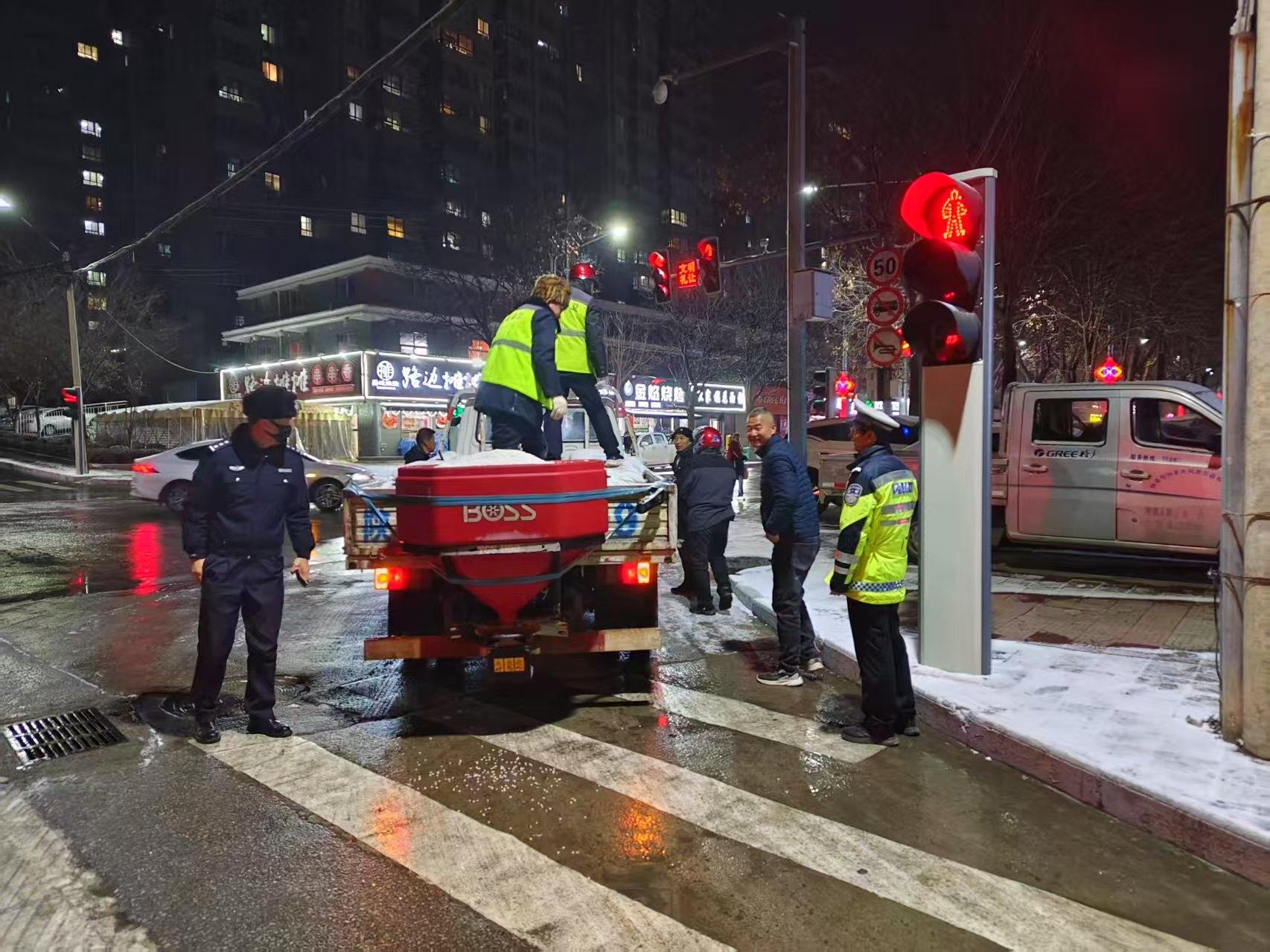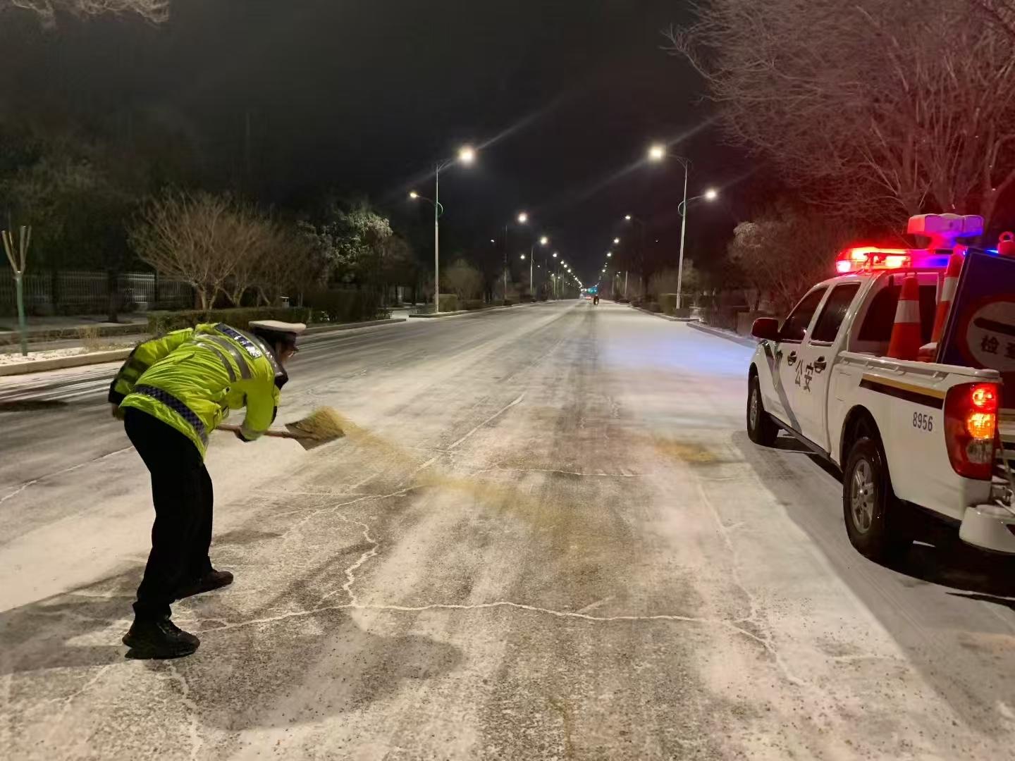 三秦都市報(bào)-三秦網(wǎng)訊(記者 孫建恒)1月19日,楊凌全區(qū)出現(xiàn)降雪天氣,氣溫驟降導(dǎo)致路面積雪結(jié)冰,給廣大群眾交通出行帶來影響。楊凌示范區(qū)公安局交通管理支隊(duì)聞雪而動(dòng)、以雪為令,迅速啟動(dòng)應(yīng)急預(yù)案,將警力最大限度投向路面一線,通過定點(diǎn)疏導(dǎo)、動(dòng)態(tài)巡邏、隱患排查等多維舉措筑牢安全防線,同時(shí)主動(dòng)聯(lián)動(dòng)市政部門開展撒鹽消雪作業(yè),以“雪停路凈、冰消路通”為目標(biāo),全力保障轄區(qū)道路通行順暢。