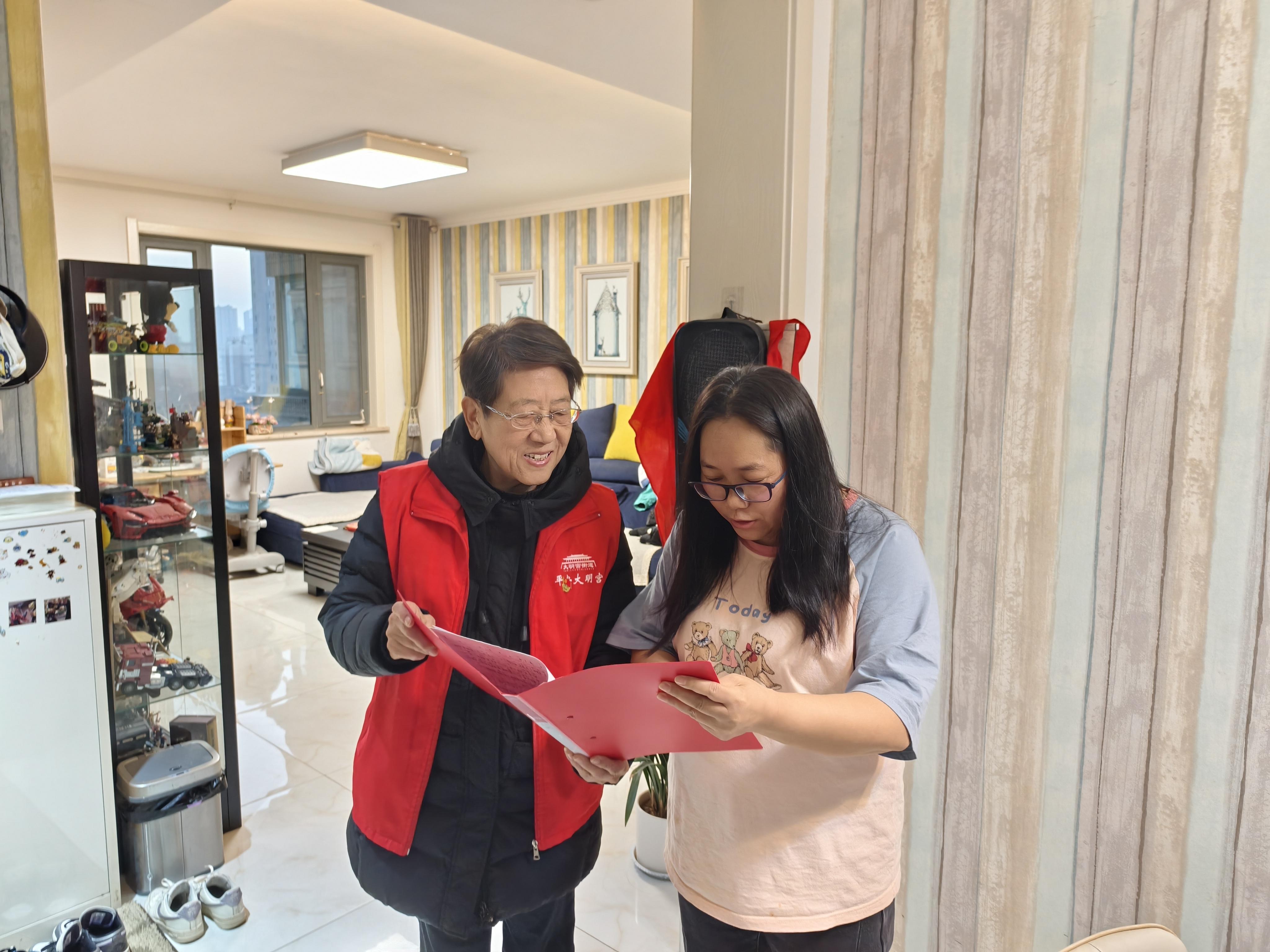 74歲的趙潔阿姨是其中一員。她樓上樓下奔走,每一次敲門都可能面對不解甚至吃閉門羹。“社區是個大家庭,和小家一樣,總得有人多付出些。我們不怕吃苦,只要能貢獻自己的一份余熱,就感覺無比開心。”即使面對困難,趙阿姨始終保持著那份堅定和熱情。