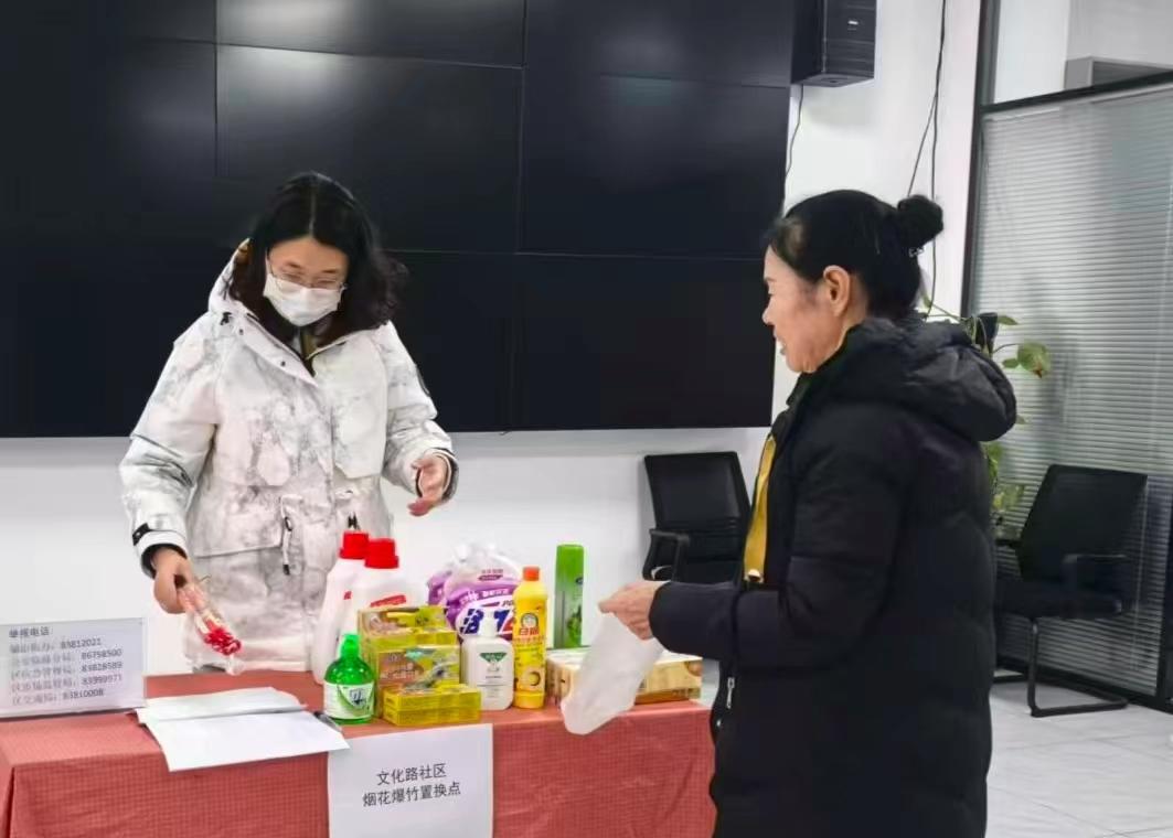 為妥善解決居民家中遺留煙花爆竹的問題,社區以“堵”為“疏”,策劃了“煙花爆竹置換禮品”活動。在大廳設置固定置換點,居民可將家中留存的煙花爆竹帶到現場,兌換成洗衣粉、洗手液、紙巾等實用生活用品。此舉既消除了居民家中存放煙花爆竹的安全隱患,又讓居民實實在在得到了實惠,有效推動了存量煙花爆竹的回收與安全處置。