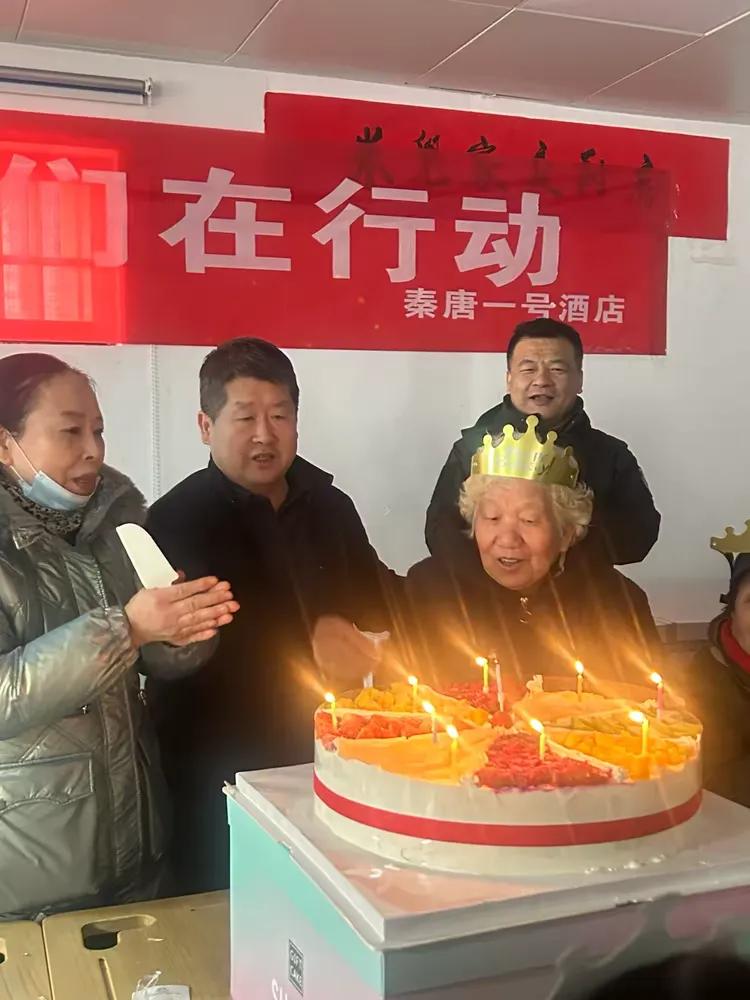 隨后“祝你生日快樂”熟悉的旋律響起,全場人員共同唱響生日歌,老壽星們在祝福中一同吹滅蠟燭,靳書記與老壽星們共同切下蛋糕,軟糯的蛋糕承載著甜蜜與關懷,工作人員逐一把蛋糕送到每個人手中,一口下去,甜在舌尖,暖在心田。