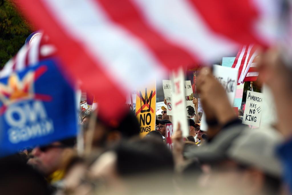 2025年10月18日,在美國華盛頓,人們參加示威游行活動。包括紐約、洛杉磯、華盛頓、芝加哥等主要城市在內的美國多地當天舉行示威游行,反對暴力打擊移民、強行派遣國民警衛隊進入美國城市、加征關稅等多項特朗普政府執行的政策。新華社記者李睿攝