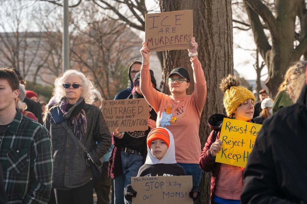 1月11日,在美國首都華盛頓,民眾抗議移民與海關執法局暴力執法。近日,美國多地民眾舉行游行示威,抗議移民與海關執法局(ICE)執法人員在明尼蘇達州明尼阿波利斯市開槍打死一名美國籍女子。新華社發(李源清攝)