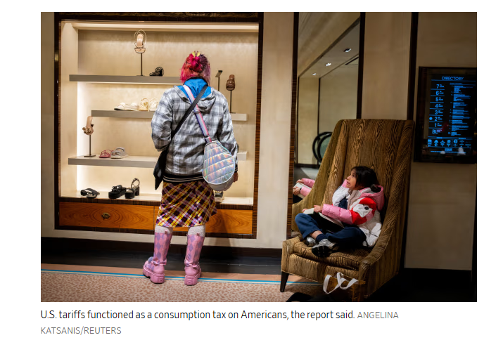 報告稱,美國關稅實際上相當于對美國民眾征收消費稅。路透社報道截圖