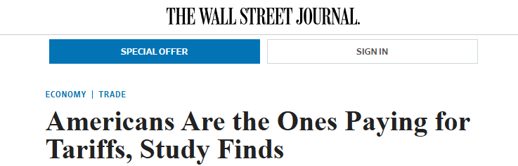 該研究與耶魯大學預算實驗室和哈佛商學院經濟學家最近的報告相呼應。報告發現,只有一小部分關稅成本是由外國生產商承擔的。