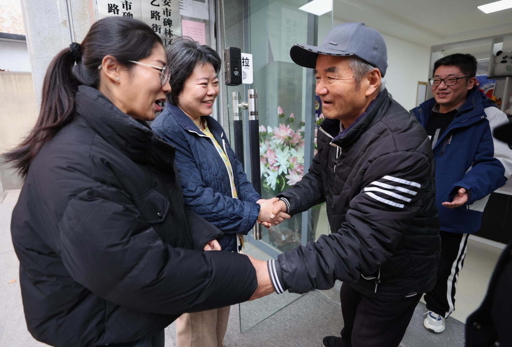 1月22日下午,在西安市碑林區太乙路街道標新街社區會議室里,韓象巨緊緊握著兩位女士的手,眼眶數次泛紅,反復說著“謝謝”。經本報“小秦幫忙”欄目多方聯系,太乙路派出所民警、社區工作人員及讀者、網友的合力找尋,雙方終于見面,這場善意和感恩雙向奔赴的故事迎來了圓滿結局。