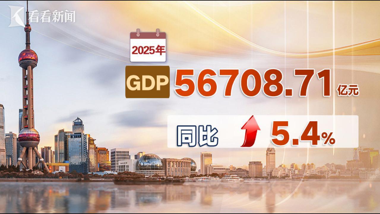 2025年上海經(jīng)濟(jì)成績(jī)單今天公布,全市實(shí)現(xiàn)地區(qū)生產(chǎn)總值超5萬6千億元,同比增長(zhǎng)5.4%,高于全國(guó)水平,并創(chuàng)下2020年以來上海的最快增速。