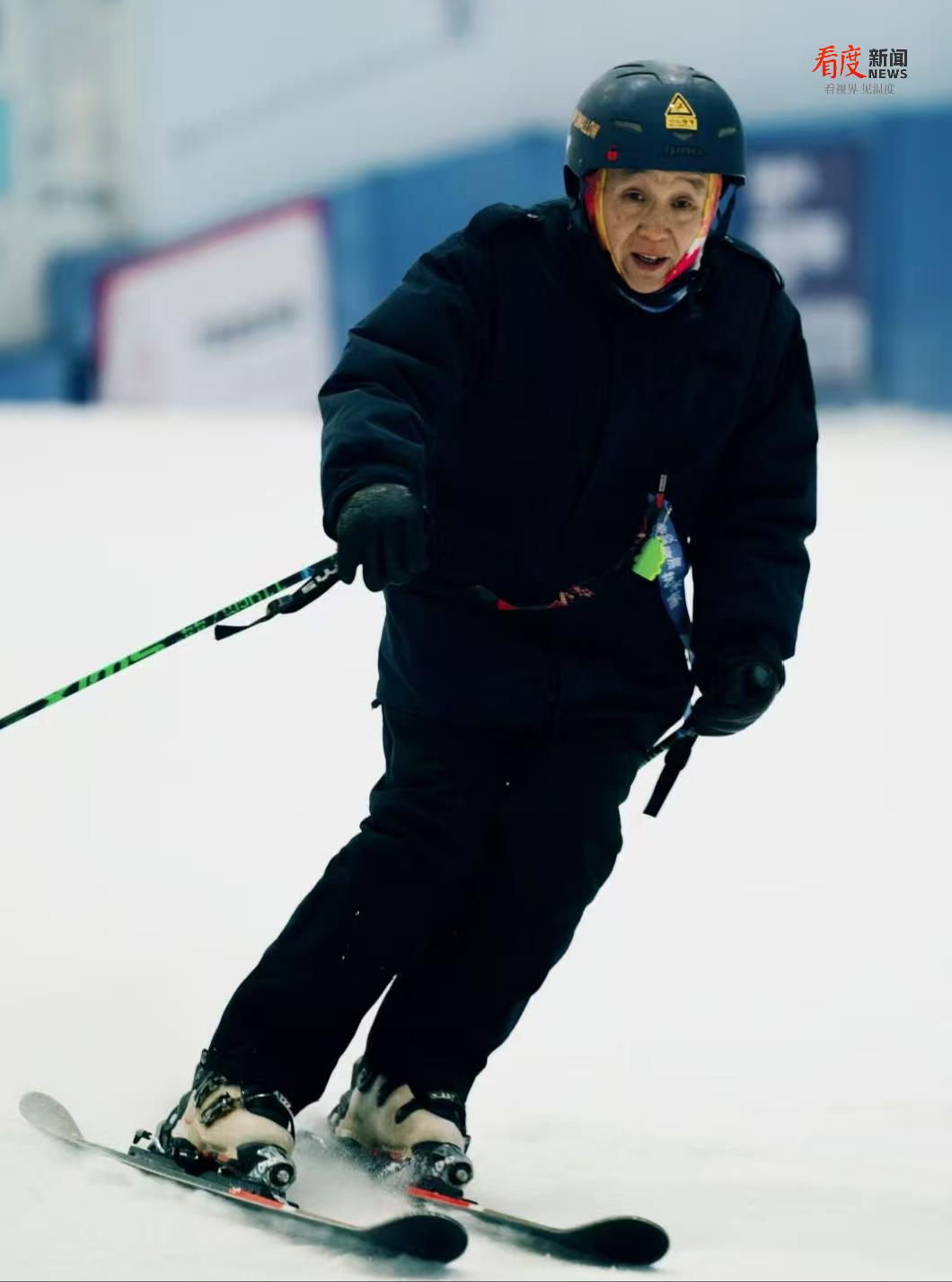 在8.08萬平方米的恒溫雪域中,七十五歲的鐘鈾正在一條雪道起點熟練檢查雪板。退休后,他將這里當作新的“單位”,幾乎每日報到,是雪場公認的“明星”。從蹣跚學步到在中高級道上自如回轉,滑雪不僅賦予他強健體魄,更點燃了他新的生活熱情。“滑雪需要反復練習,學會就容易上癮,技術越熟越愛滑。”在他的帶動下,女兒、女婿相繼“入坑”,小孫女也成為兒童雪道上可愛的“小雪友”。作為敏銳的觀察者,鐘爺爺見證了成都冰雪氛圍的逐步升溫:“在南方城市里,成都的滑雪氛圍很好。我們有旱雪基礎,還有室內大雪場,群眾基礎就更扎實了。”