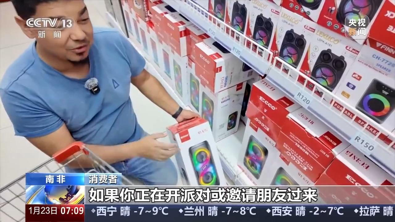 在南非首都開(kāi)普敦的一家中國(guó)商品批發(fā)城里,顧客絡(luò)繹不絕,一款集收音機(jī)、燈光、移動(dòng)電源等為一體的多功能藍(lán)牙音箱,格外受歡迎。