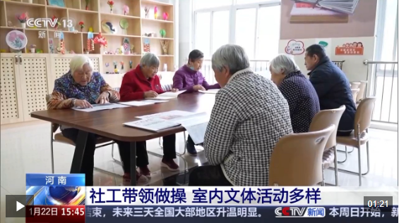 在河南淇縣老年公寓,針對最近低溫雨雪冰凍天氣,增加了室內文體活動的時長和種類,不僅有社工帶著老人們做操鍛煉身體,還安排了書法、閱讀、象棋等豐富多彩的文體項目,豐富老人們的室內生活。