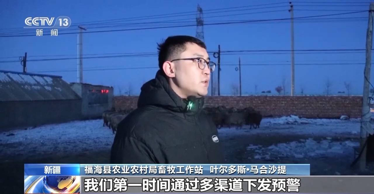 福海縣農業農村局畜牧工作站 葉爾多斯·馬合沙提:我們第一時間通過多渠道下發預警,組建技術小組分片包戶上門,重點指導養殖戶加固圈舍、加裝保溫設施,同時排查圈舍安全隱患,協調調運應急草料,全力保障冬羔成活率和畜禽安全越冬。