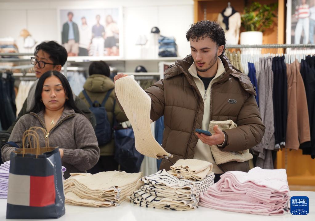 1月22日,在美國紐約一處購物中心,顧客挑選商品。新華社記者 張鳳國 攝