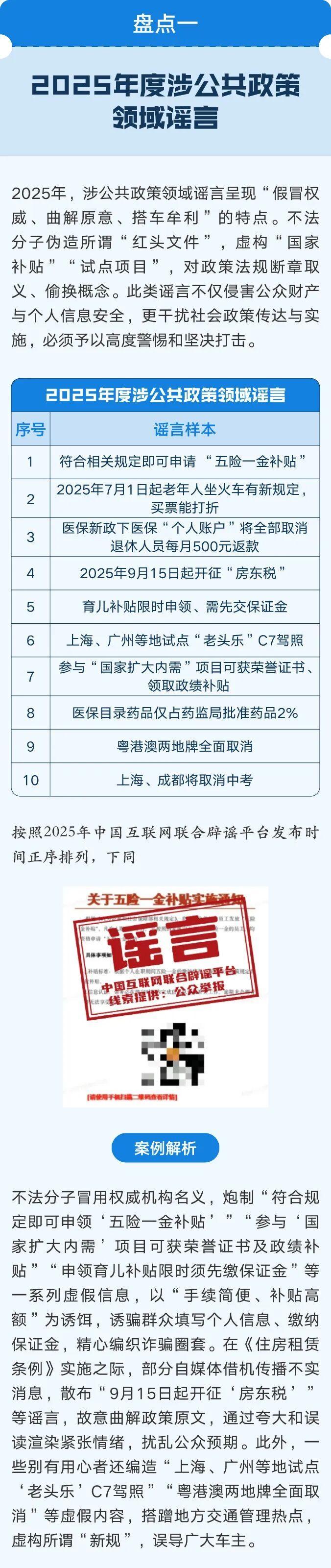 歲末年初之際,中國互聯(lián)網(wǎng)聯(lián)合辟謠平臺特此盤點(diǎn)2025年度網(wǎng)絡(luò)謠言,對于過去一年傳播較廣、誤導(dǎo)性強(qiáng)的熱點(diǎn)謠言,拆解套路、廓清迷霧、錨定真相。