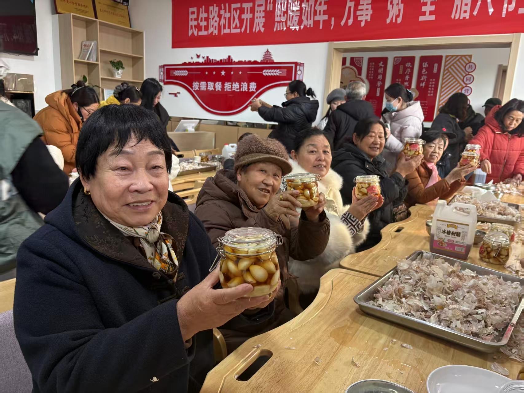 隨后進行的臘八蒜制作環(huán)節(jié),更是將氣氛推向溫馨高潮。居民們圍坐在一起,手法熟練地剝蒜、裝瓶、添醋,彼此交流腌制心得與生活趣事。一雙雙忙碌的手,一句句親切的家常,在寒冷的冬日里匯聚成濃濃的鄰里情。