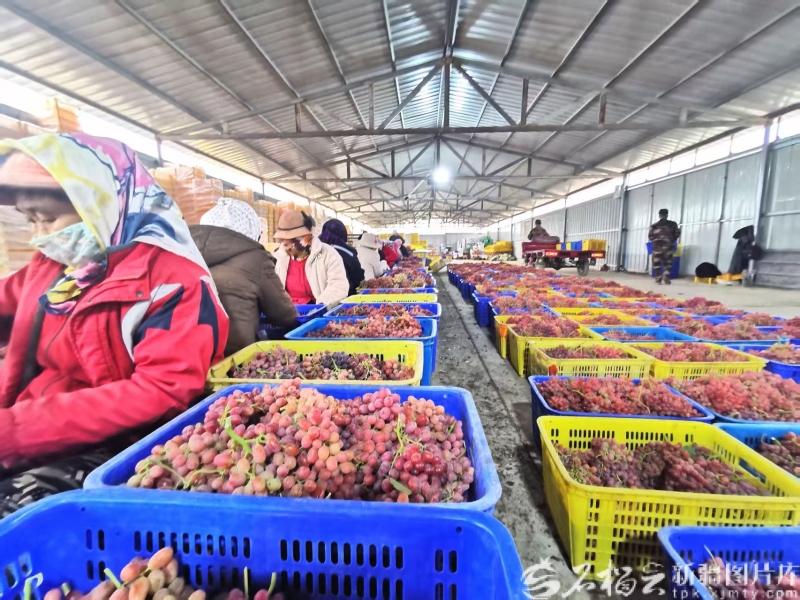博樂市西域豐農葡萄種植農民專業合作社聯合社的分揀車間內,工人們正在分揀葡萄,通過冷鏈運往國外。(資料圖)石榴云/新疆日報記者 曹華攝