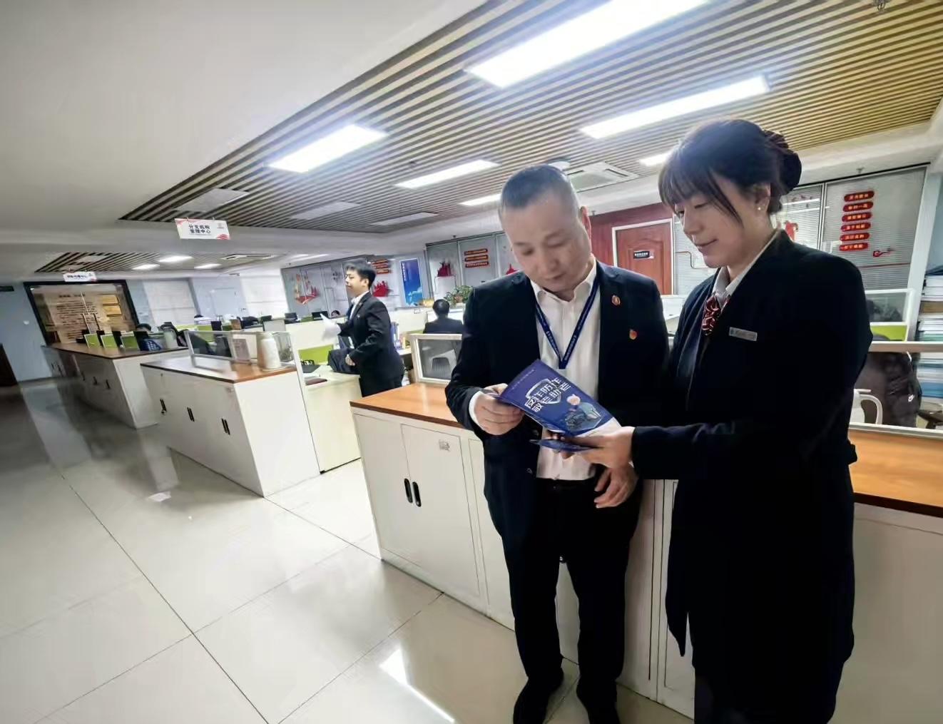 在華春建設(shè)工程項目管理有限責(zé)任公司,銀行員工向企業(yè)員工發(fā)放反詐宣傳折頁,結(jié)合“冒充領(lǐng)導(dǎo)詐騙”“虛假投資理財”等職場高發(fā)詐騙案例,講解詐騙分子的話術(shù)套路與識別技巧,提醒大家在工作中保持警惕,遇到可疑信息及時核實。