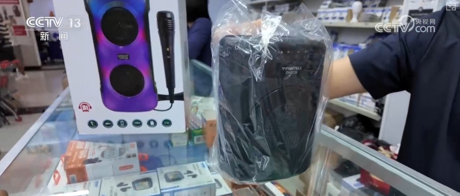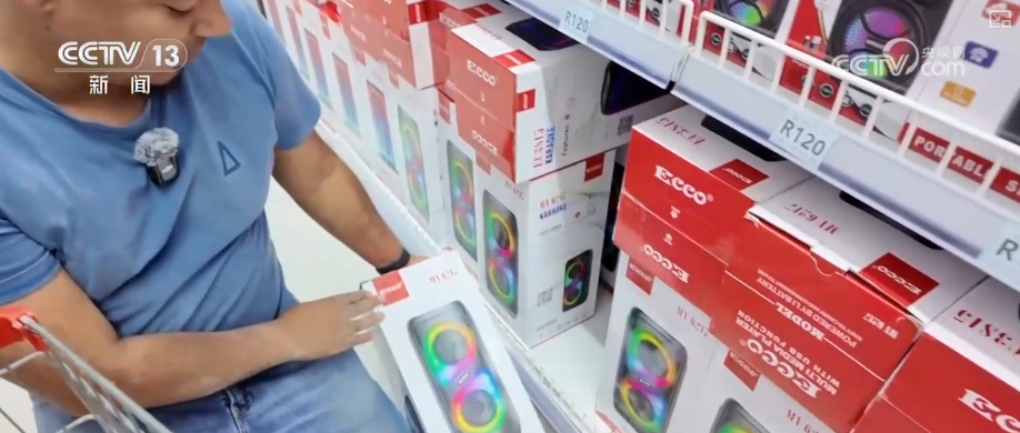 在南非首都開普敦的一家中國商品批發城里,顧客絡繹不絕。一款集收音機、燈光、移動電源等為一體的多功能藍牙音箱格外受歡迎。