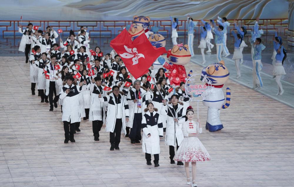 中國香港體育代表團在2025年第九屆亞洲冬季運動會開幕式上入場。新華社記者 王建威 攝