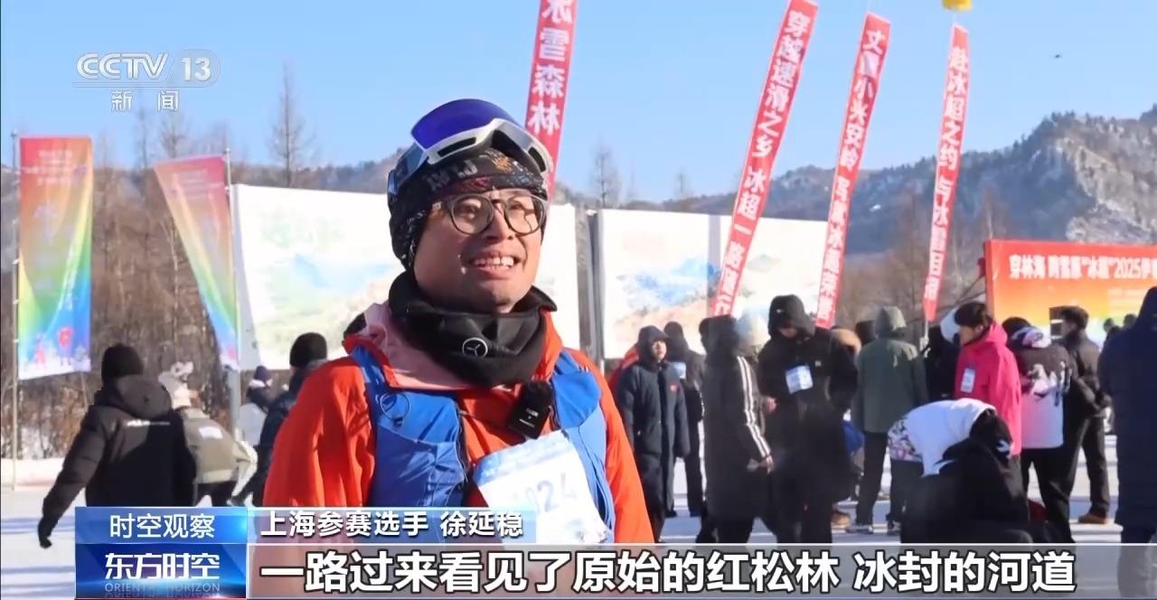 上海參賽選手徐延穩:第一次來東北體驗冰雪越野,感覺太爽了,一路過來看見了原始的紅松林、冰封的河道,這是以前從來沒有見到過的,我們拍了很多照片給家人看,讓他們看看東北的冬天有多美。
