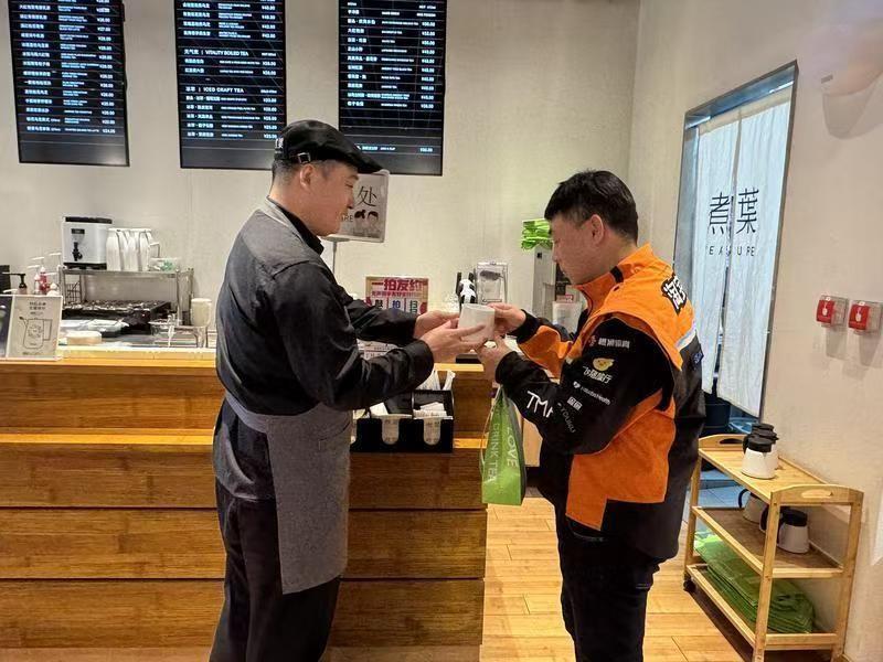 44歲的無聲騎手高源走進一家簽約商戶,輕輕敲了敲柜臺。店員立即抬頭,微笑著比出一個“OK”手勢,隨即轉(zhuǎn)身麻利地打包餐品。沒有一句言語,卻完成了一次默契而溫暖的交接。