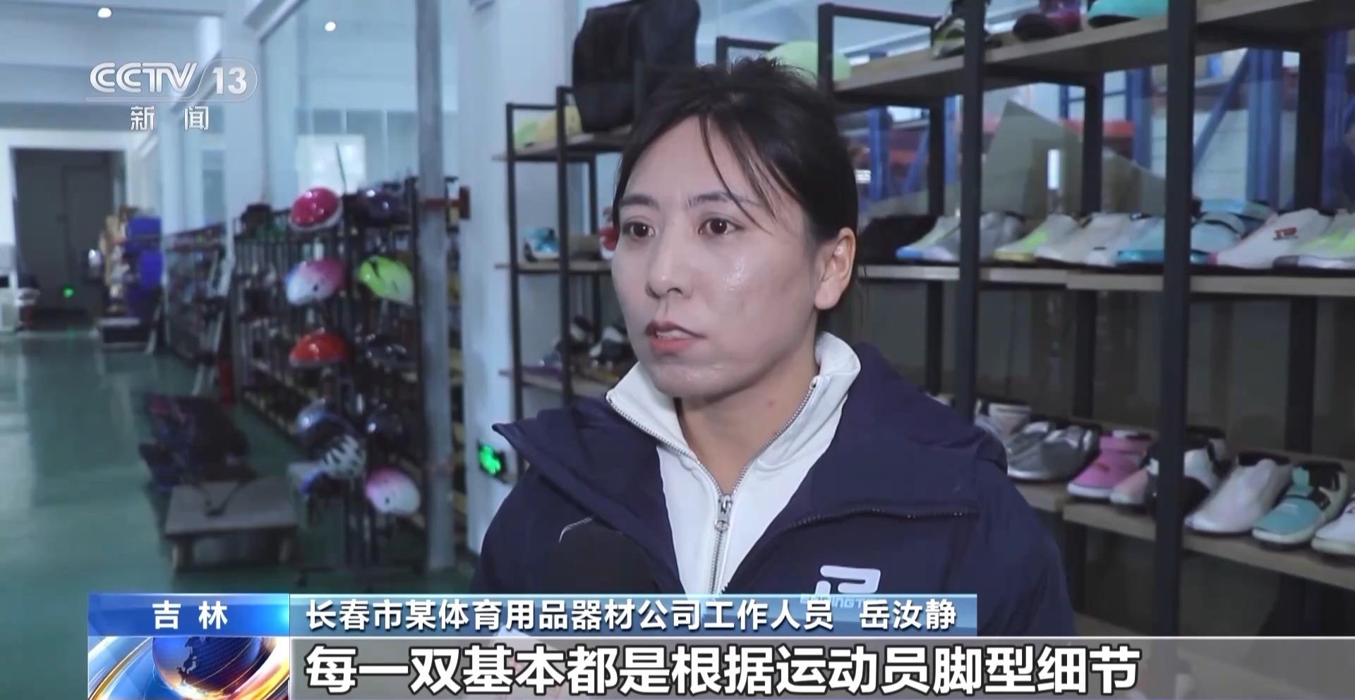 長春市某體育用品器材公司工作人員 岳汝靜:每一雙都是根據運動員腳型細節定制化打造,高度貼合鞋身,解決了亞洲運動員腳型與進口鞋不匹配的問題。