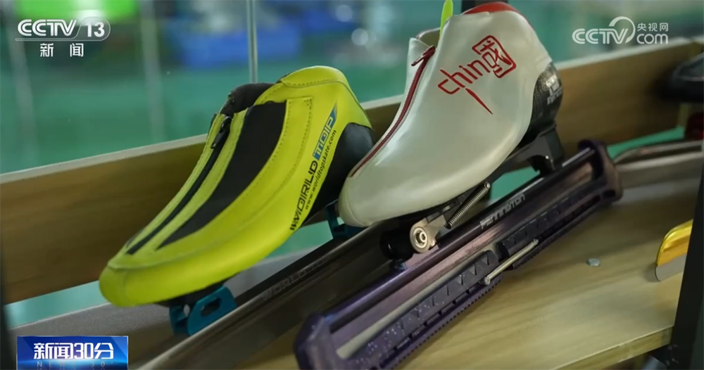 長春市某體育用品器材公司工作人員 岳汝靜:每一雙基本都是根據(jù)運動員腳型細節(jié)定制化打造,高度貼合鞋身,解決了亞洲運動員腳型與進口鞋不匹配的問題。
