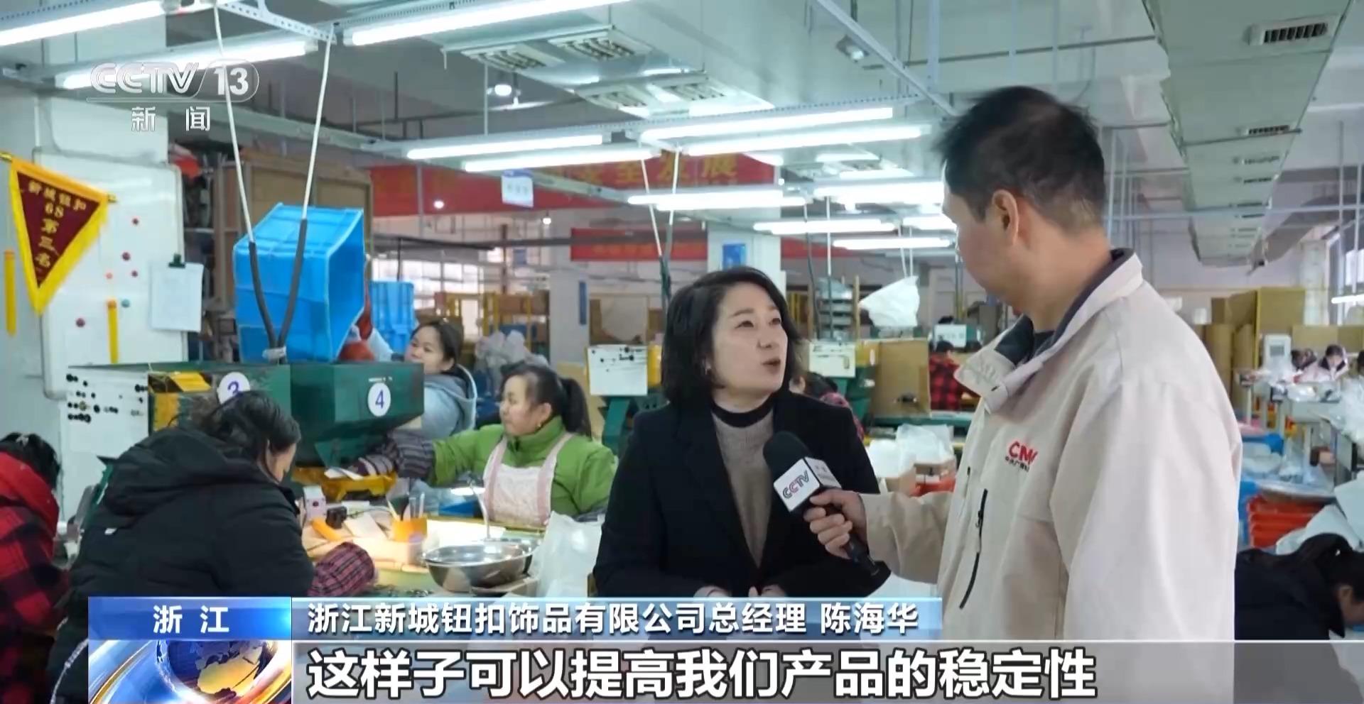 浙江新城鈕扣飾品有限公司技術部負責人 陳鏘:這是我們兩個月前剛引進的一臺AI新機器,所以現(xiàn)在我們要想辦法多引進一些自動化設備,做到更加高效 。