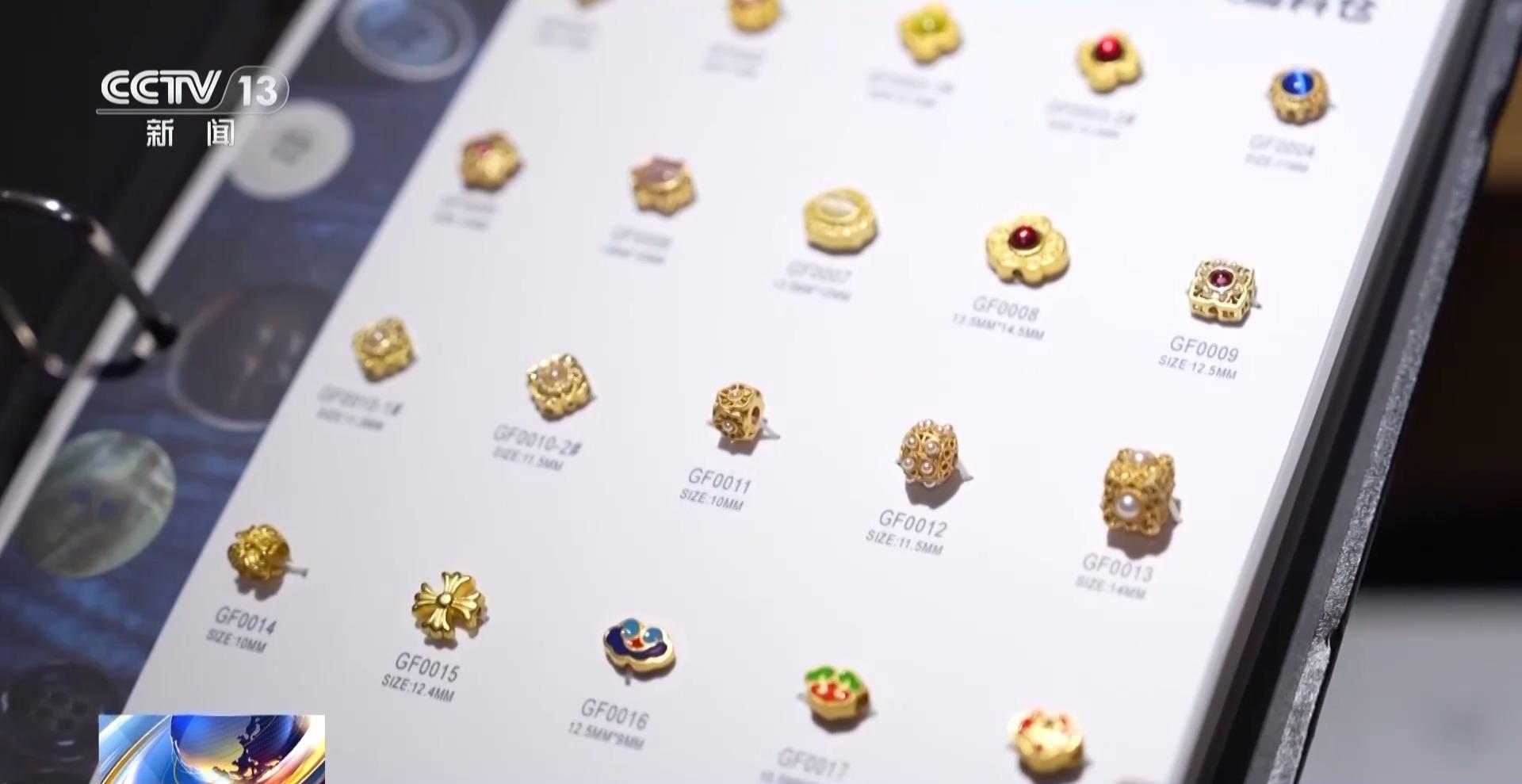 浙江新城鈕扣飾品有限公司總經理 陳海華:高端客戶對高端產品的需求量大,所以我們通過這個點子開發(fā)不同的產品和材質,從而提升產品的附加值。
