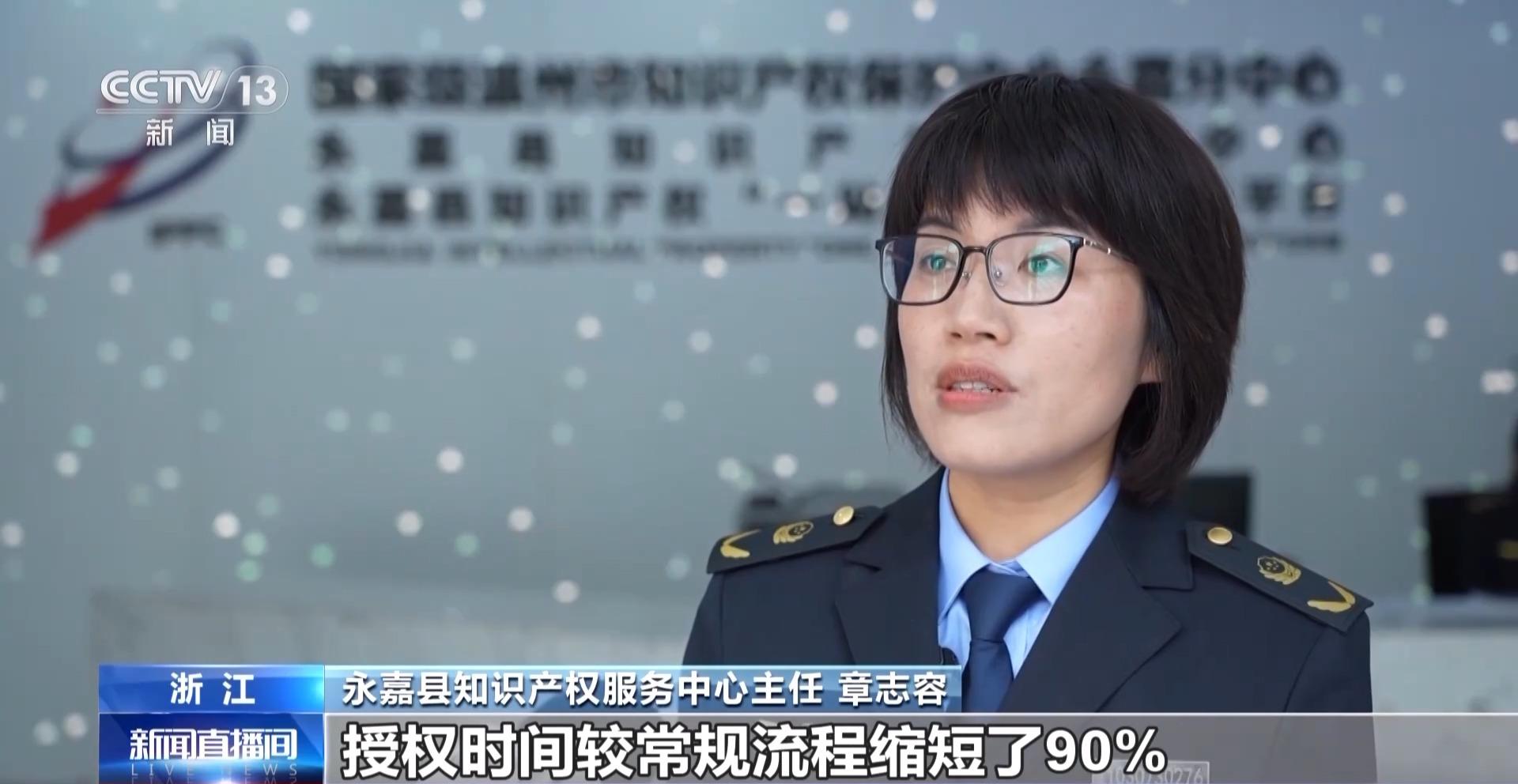 永嘉縣知識產權服務中心主任 章志容:2025年3月份永嘉分中心正式投入運行,紐扣拉鏈產業(yè)2025年新增外觀設計專利156件,授權時間較常規(guī)流程縮短了90%,企業(yè)的獲得感也在逐步提升。