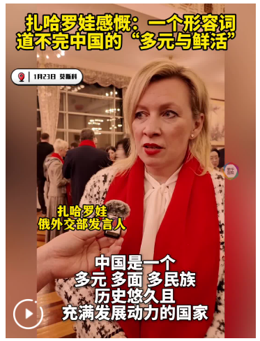 俄羅斯外交部發言人扎哈羅娃23日在莫斯科表示,用一個詞形容中國是不夠的,中國是一個多元、多民族、歷史悠久且充滿發展動力的國家。