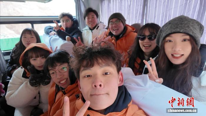 2026年1月24日,全國臺聯(lián)第三十二屆臺胞青年冬令營甘肅分營中的兩岸青年在行程中自拍合影。受訪者供圖