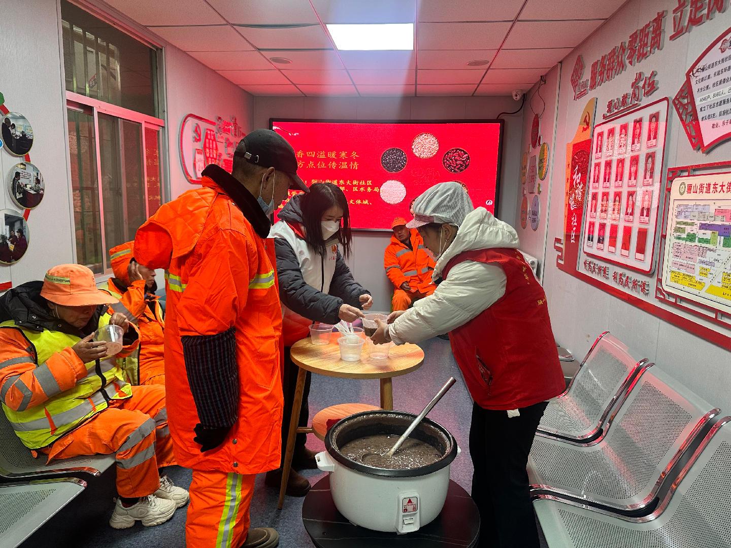 “身上暖和了,心里更暖和,社區(qū)想得真周到!”環(huán)衛(wèi)工李師傅也在就近分發(fā)點(diǎn)喝上了粥。