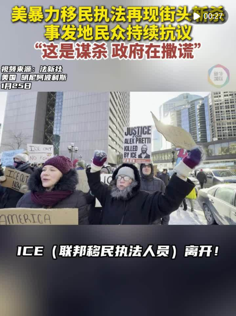 特朗普政府本月初在明州發(fā)起大規(guī)模移民執(zhí)法行動后,已致兩名美國公民殞命。本月7日,美國移民與海關(guān)執(zhí)法局執(zhí)法人員在明尼阿波利斯市抓捕非法移民時,開槍打死美國公民蕾恩·妮科爾·古德,激起當(dāng)?shù)丶爸苓叺貐^(qū)的抗議活動。