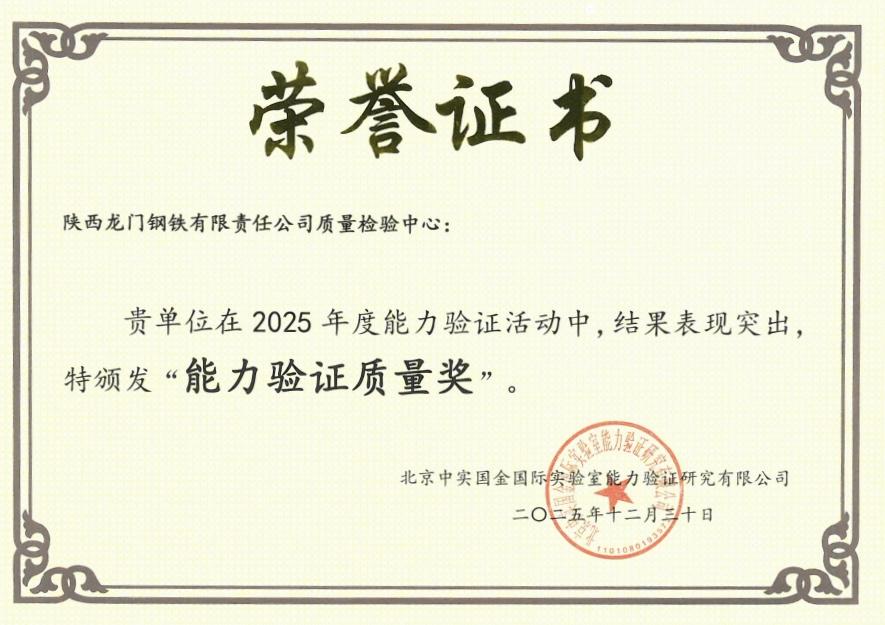 三秦都市報-三秦網訊(張涵菲 呂睿婷 記者 和平)近日,北京中實國金國際實驗室組織的2025年度“能力驗證質量獎”評選結果揭曉,陜鋼集團龍鋼公司質量檢驗中心憑借穩定卓越的檢驗檢測能力,連續五年榮獲該獎項,彰顯了龍鋼公司在行業質量管控領域的過硬實力。