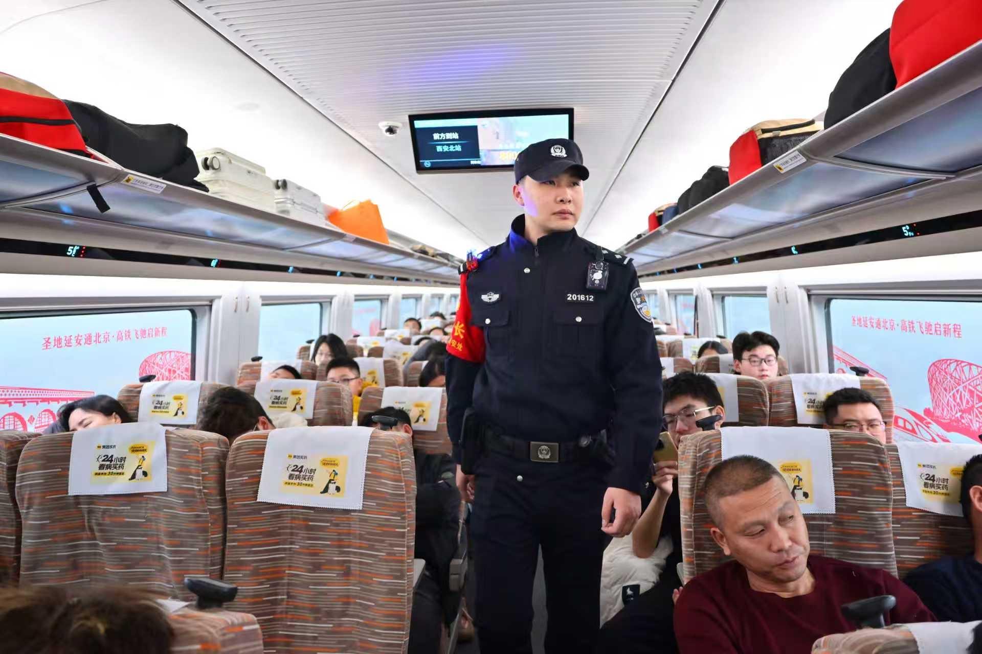 “首趟延安至北京高鐵承載著革命老區人民的期盼,保障列車安全運行和旅客出行平安是我們的首要職責。”G359次列車乘警長李致遠表示,西安鐵路公安局西安公安處乘警支隊將持續以高標準、嚴要求落實高鐵安保措施,常態化開展安全巡查、宣傳服務和應急處置工作,用專業能力和貼心服務,守護每一趟高鐵的安全暢通,為陜北革命老區振興保駕護航。