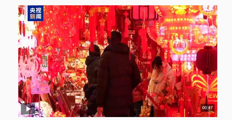 在重慶市渝中區,各個小商品市場陸續開啟“年味模式”,紅燈籠高掛、中國結搖曳,各類融入馬年元素的創意小商品,吸引了市民前來采購。