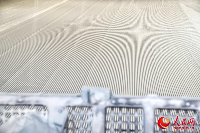 壓雪機刻出的“面條雪”。人民網記者李洋攝