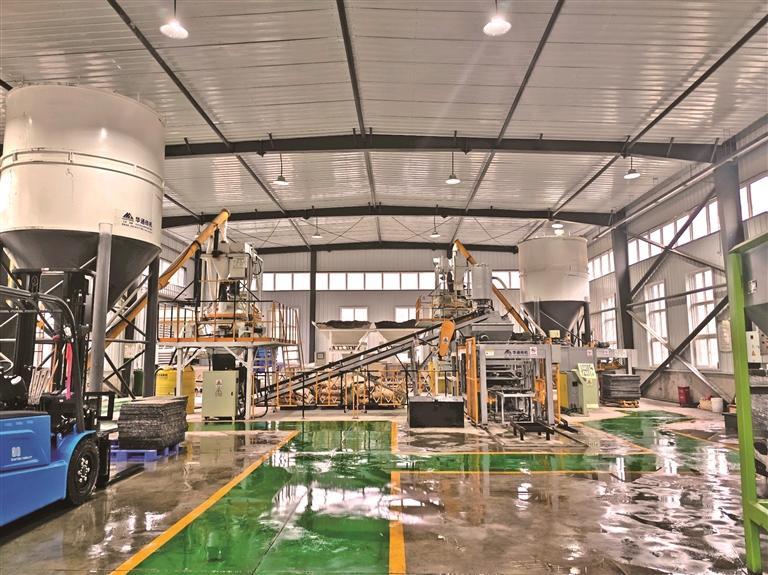 堆積的尾礦經(jīng)過(guò)預(yù)處理后,與少量的水泥及其他輔料混合,再經(jīng)過(guò)高壓成型、養(yǎng)護(hù)等工藝,最終變身為堅(jiān)固耐用的路面磚。