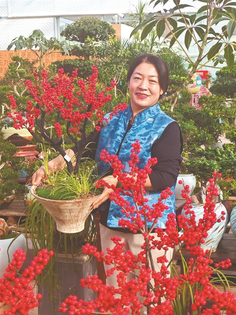 延安正大宏園林綠化有限公司里,負責人蔡小妮在展示花卉(資料照片)。 受訪者供圖