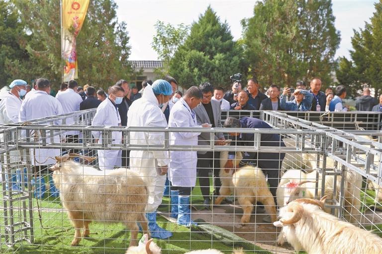 校地協作的成果很快顯現。去年9月,榆林市2025年中國農民豐收節分會場陜北白絨山羊賽羊大會在黃蒿界鎮舉辦,160只“羊明星”同臺競技,成為展示良種培育成果、激活市場活力的重要窗口。首屆優質種羊拍賣會同步開槌,6只優質種羊經多輪激烈競價全部成交,總成交價達65萬元。其中,靖邊縣通達陜北白絨山羊良種養殖有限公司選送的成年種公羊,以36.8萬元的高價摘得“標王”,被來自鄂爾多斯的養殖戶胡彥兵收入囊中。