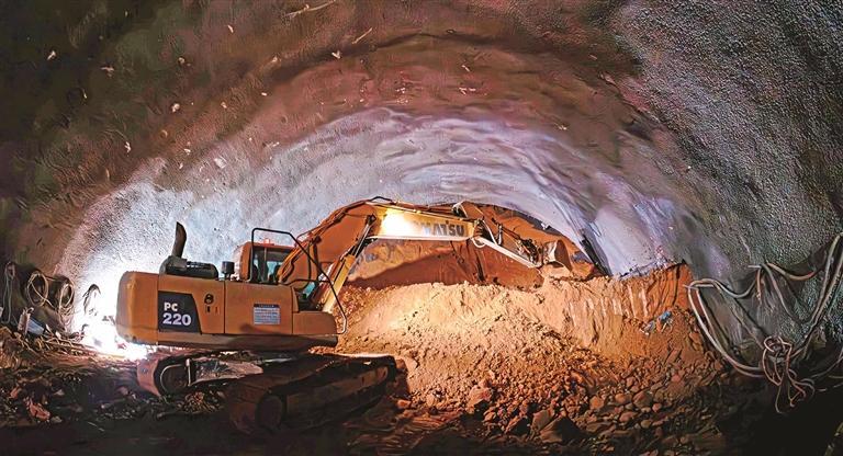 一月十八日,在延榆高鐵重難點(diǎn)控制工程——桐柏塬一號隧道,挖掘機(jī)在施工。 受訪單位供圖