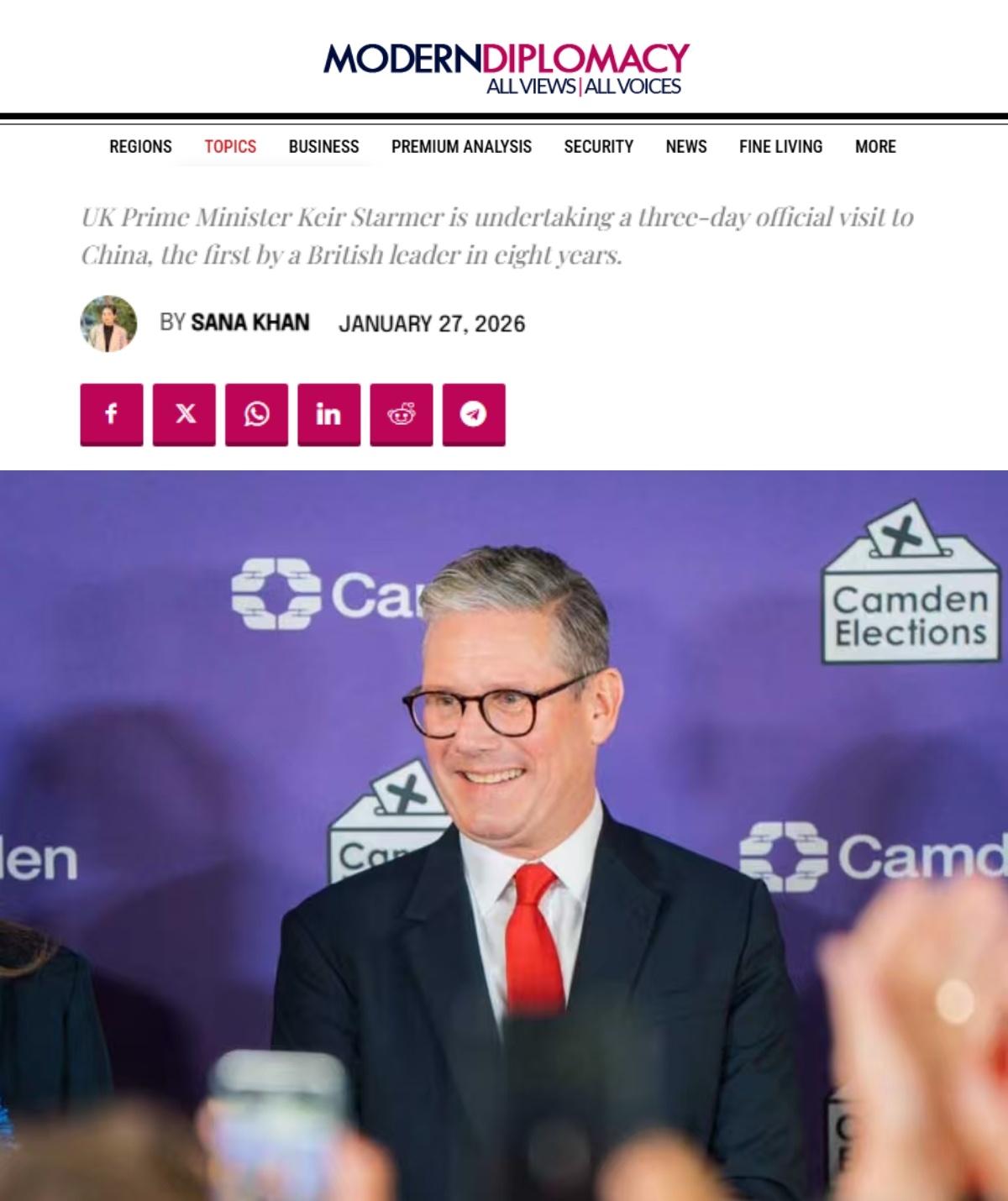 歐洲《現代外交》網站報道稱,斯塔默此行標志著英國外交策略的轉變,倫敦正在根據地緣政治變化重新評估其全球伙伴關系。報道稱,斯塔默將探索與世界第二大經濟體的經濟和貿易合作途徑,旨在吸引投資,擴大英國企業的市場準入,并與中國就氣候變化、人工智能和公共衛生等共同全球關切展開交流。報道還分析稱,此次訪問展示了中等大國如何通過多元化伙伴關系來保護本國利益,以應對國際關系中系統性的不確定性。