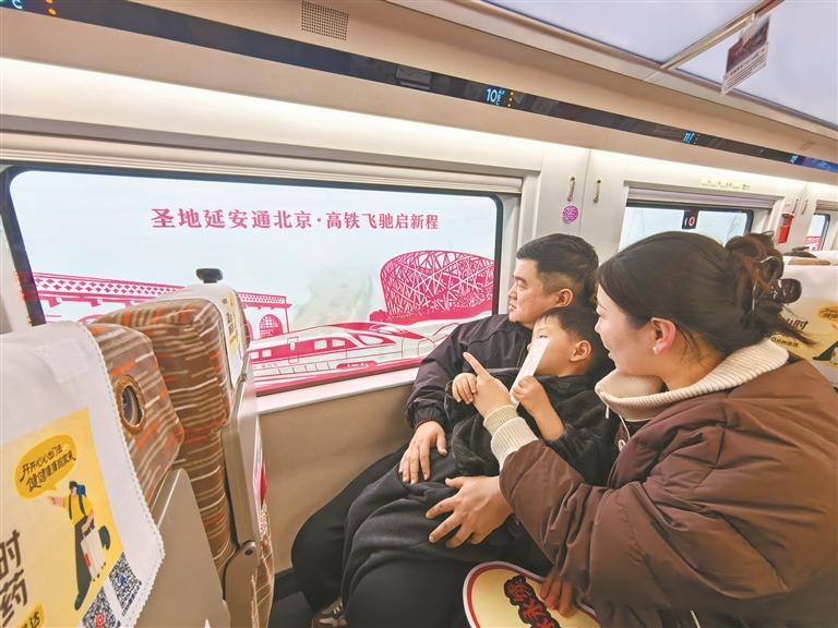 1月26日,G359次列車“圣地延安通北京·高鐵飛馳啟新程”主題車廂內,一家三口溫馨互動。 本報記者 楊光攝